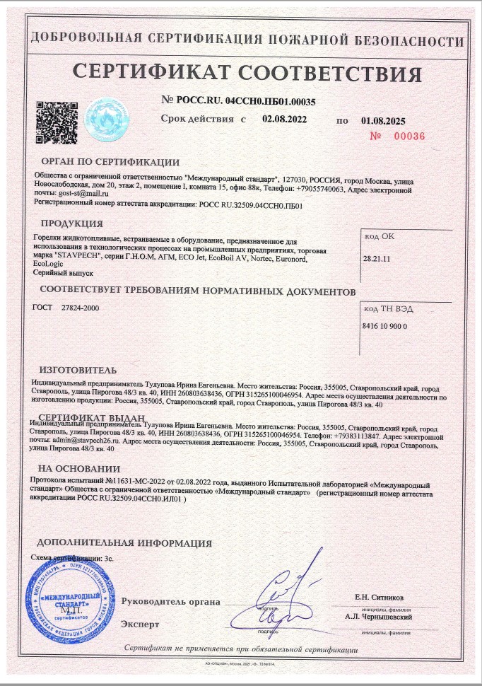 Горелка обладает высокой надежностью и стабильностью работы. У нее лучшие показатели эмиссии, требуется минимум обслуживания.