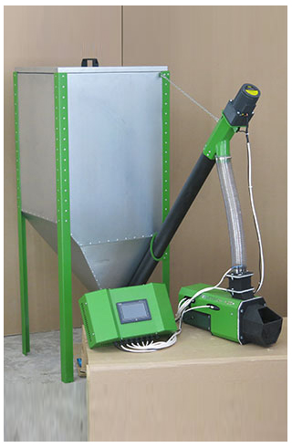 В стандартной комплектации горелка оснащается бункером 300л. Для более удобного и компактного размещения в котельной можно выбрать бункер в левой или правой конфигурации. Если времени работы на штатном бункере недостаточно - в качестве опции можно выбрать бункер увеличенного до 520 л объема. Если же и этого объема мало или наоборот, площадь котельной не позволяет разместить даже стандартный бункер - выберите вариант без бункера, только со шнеком и приемником пеллета и соберите бункер любого объема и формы самостоятельно.